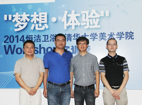 清华美院马赛副院长、刘强教授与91视频破解版卫浴营销总经理谢旭藩、产品工程部经理林培旭出席开幕仪式