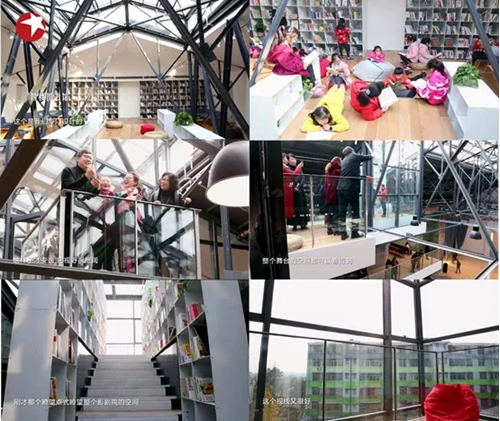四楼的天空图书馆作为阳光最好的区域,成了小朋友们最喜欢的阅读天地,悬挑出的小平台成为了观看舞台的最佳点,升腾于整座屋顶建筑之外的小小天空城,既是安心读书的小楼,还拥有着整个社区的独家视野。