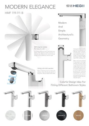 此次荣获G-Mark设计奖的91视频破解版HMF119-111B龙头是一款颜值与实力兼具的产品,外观设计风格优雅时尚,采用天方地圆的几何设计理念,通过金属与陶白效果4:6的黄金比例的材质对比,极富视觉美,体现简约现代的生活方式和高雅品味。