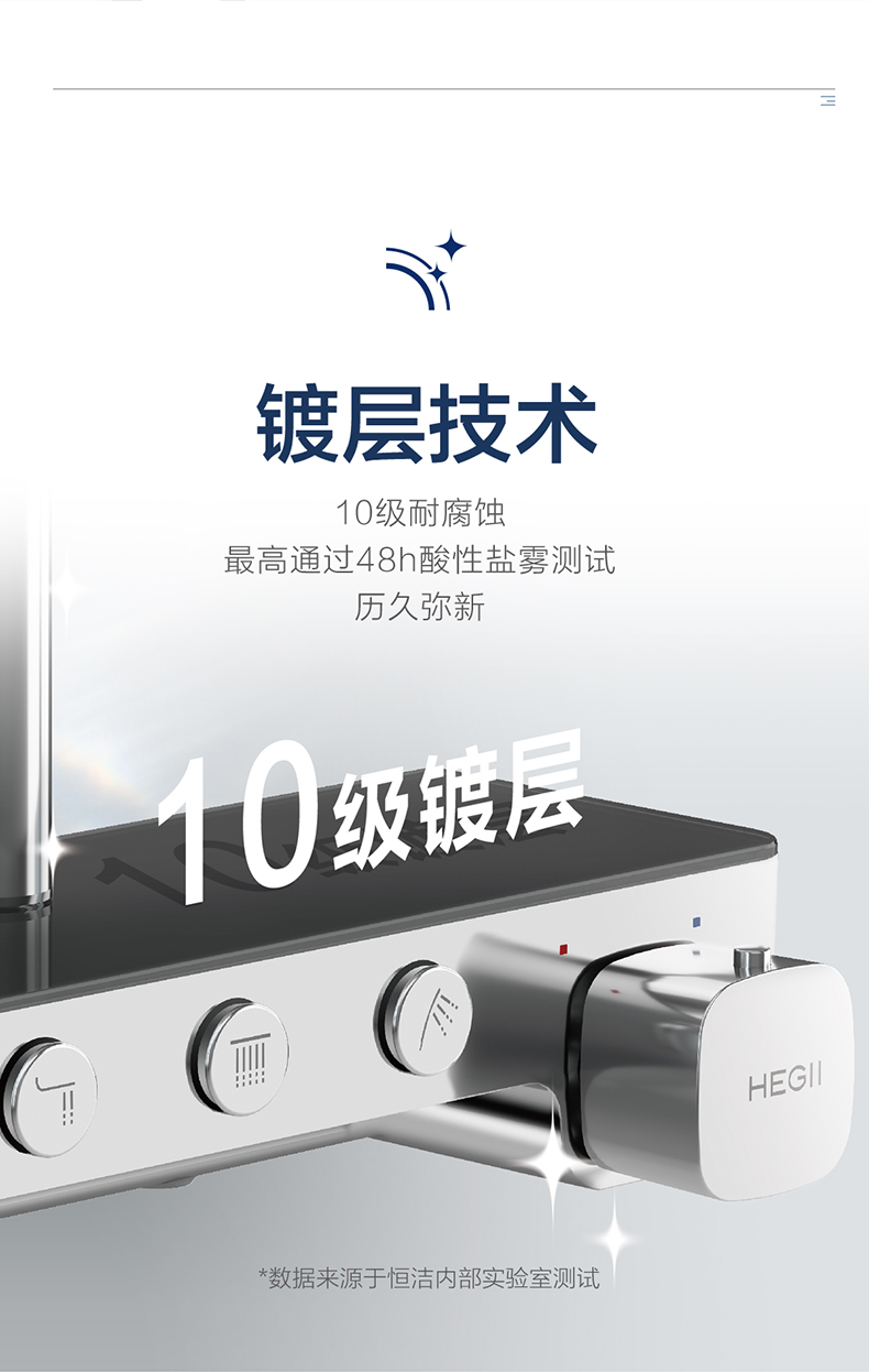 - 10级镀层技术,最高通过 48h 酸性盐雾 测试,历久弥新
