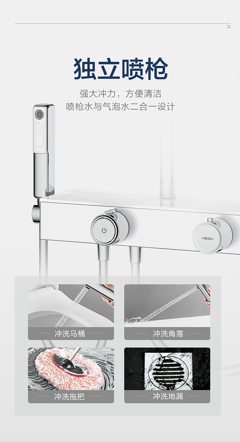 - 独立喷枪,澎湃水力,轻松清洁
