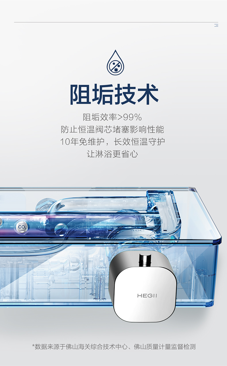 - 长效阻垢技术,高效阻垢,阻垢效率>99%,10年免维护,长效恒温保护