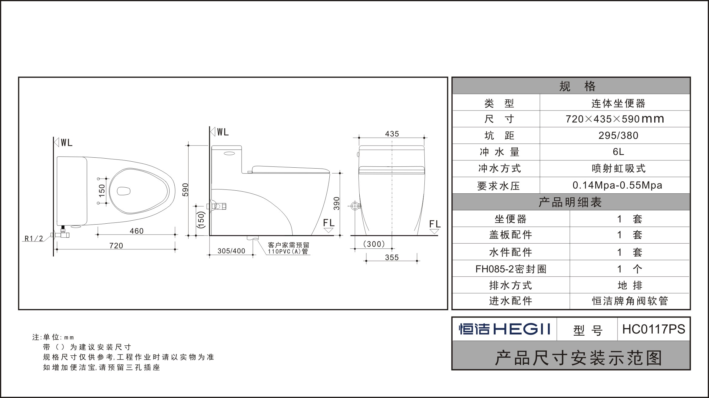 HC0117PS节水坐便器